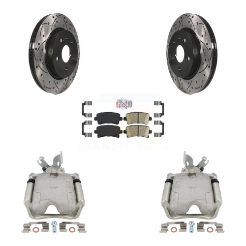 Rear Brake Caliper Drill Slot Rotor Ceramic Pad Kit For Chevrolet Impala Buick Regal XTS KCD-101450N
