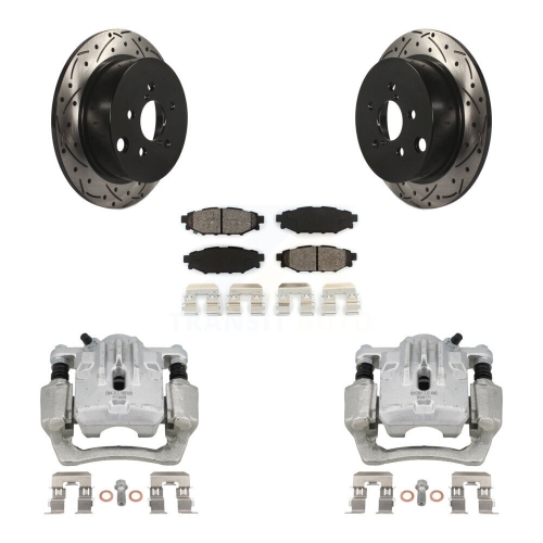 Rear Brake Caliper Drill Slot Rotor Semi-Metallic Pad Kit For Subaru Impreza Forester XV KCD-100559S