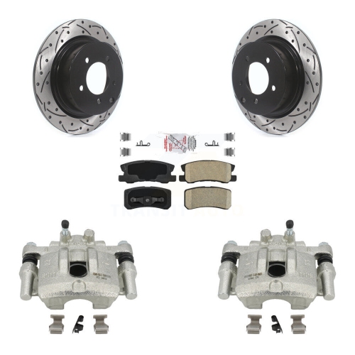 Rear Brake Caliper Drill Slot Rotors Ceramic Pad Kit For Mitsubishi Lancer Dodge Caliber KCD-101442N
