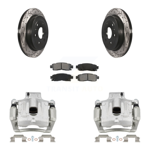 Rear Brake Caliper Drilled Slot Rotor Semi-Metallic Pad Kit For GMC Acadia Buick Enclave KCD-100486S