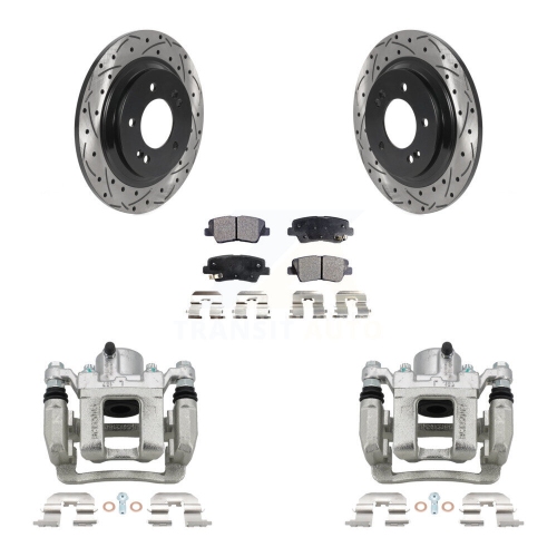 Rear Brake Coat Caliper Drill Slot Rotors Semi-Metallic Pad Kit For 2013 Kia Optima 2.4L KCD-100557P