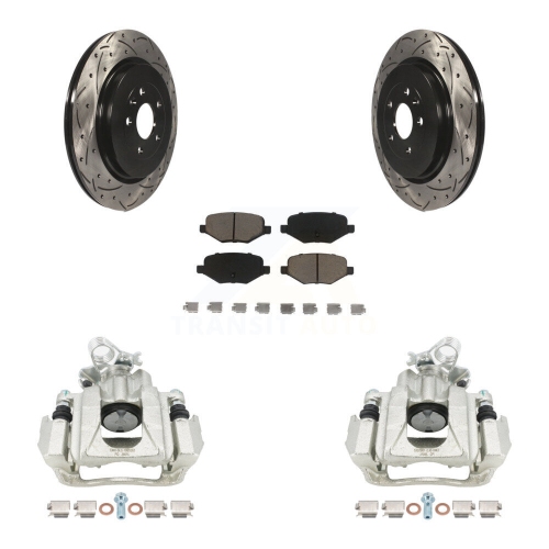 Rear Brake Coated Caliper Drill Slotted Rotors Ceramic Pad Kit For Ford Flex Lincoln MKS KCD-100496C