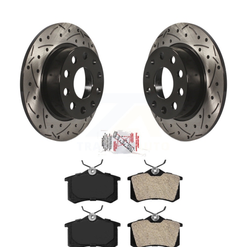 Rear Coated Drilled Slotted Disc Brake Rotor & Semi-Metallic Pad Kit For Volkswagen Jetta KDA-101935