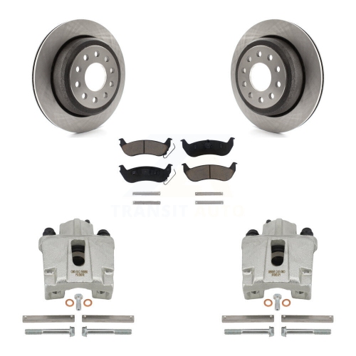 Rear Disc Brake Caliper Rotors And Ceramic Pads Kit For 2003-2011 Lincoln Town Car Sedan KC8-100364C