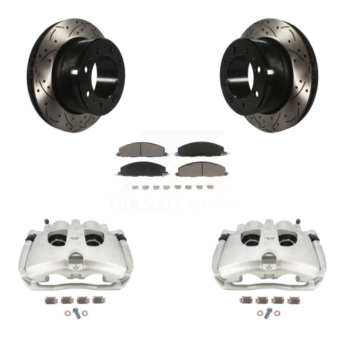 Rear Disc Brake Coated Caliper Drill Slot Rotors Ceramic Pad Kit For Ram 3500 2500 Dodge KCD-100604C