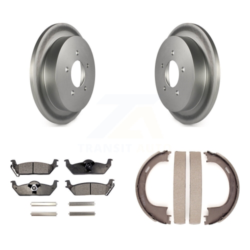 Rear Disc Coated Rotors Ceramic Pads And Parking Brake Shoes Kit For Ford F-150 KGT-103965