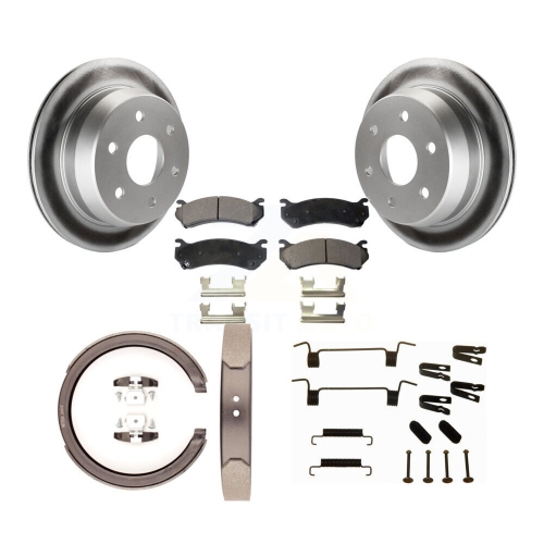 Rear Disc Coated Rotors Ceramic Pads Parking Brake Shoes And Hardware Kit For KGT-104094