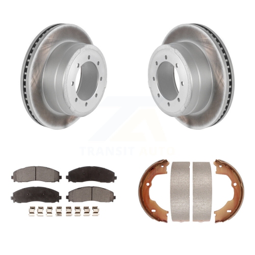 Rear Disc Coated Rotors Ceramic Pads & Parking Brake Shoes Kit For Ford F-450 Super Duty KGT-103885