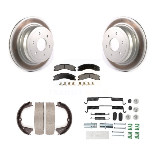 Rear Disc Coated Rotors Ceramic Pads Parking Shoes Hardware Kit For 16-19 Nissan TITAN XD KGT-104050