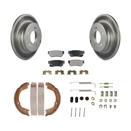 Rear Disc Coated Rotors Ceramic Pads Parking Shoes & Hardware Kit For Hyundai Sonata 3.3L KGT-104065