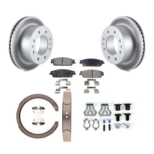 Rear Disc Coated Rotors Semi-Metallic Pads Parking Brake Shoes And Hardware Kit For KGF-103867