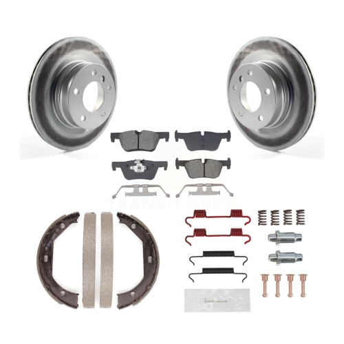 Rear Disc Coated Rotors Semi-Metallic Pads Parking Brake Shoes Hardware Kit For BMW 328i KGS-103443
