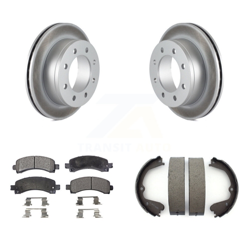 Rear Disc Coated Rotors Semi-Metallic Pads & Parking Brake Shoes Kit For GMC Savana 3500 KGF-103406