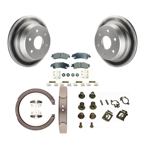 Rear Disc Coated Rotors Semi-Metallic Pads Parking Shoes & Hardware Kit For Chevrolet GMC KGA-107128