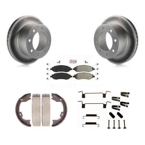 Rear Disc Coated Rotors Semi-Metallic Pads Parking Shoes Hardware Kit For Ford F-350 Duty KGA-107320