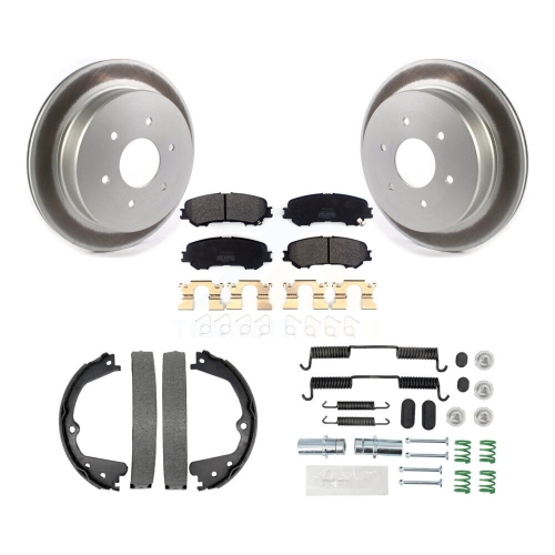Rear Disc Coated Rotors Semi-Metallic Pads Parking Shoes & Hardware Kit For Nissan TITAN KGF-103707