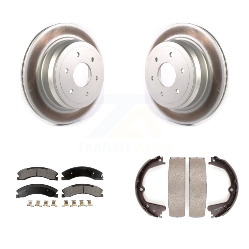 Rear Disc Coated Rotors Semi-Metallic Pads & Parking Shoes Kit For 16-19 Nissan TITAN XD KGF-103447