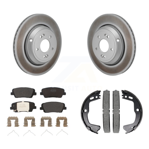 Rear Disc Coated Rotors Semi-Metallic Pads & Parking Shoes Kit For 18-20 Genesis G80 3.3L KGF-103394