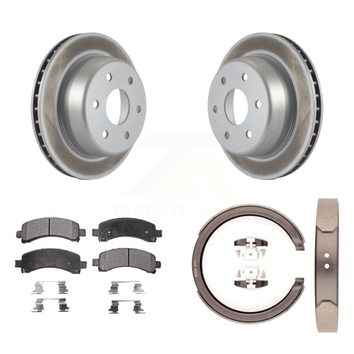 Rear Disc Coated Rotors Semi-Metallic Pads Parking Shoes Kit For Chevrolet GMC Avalanche KGF-103526