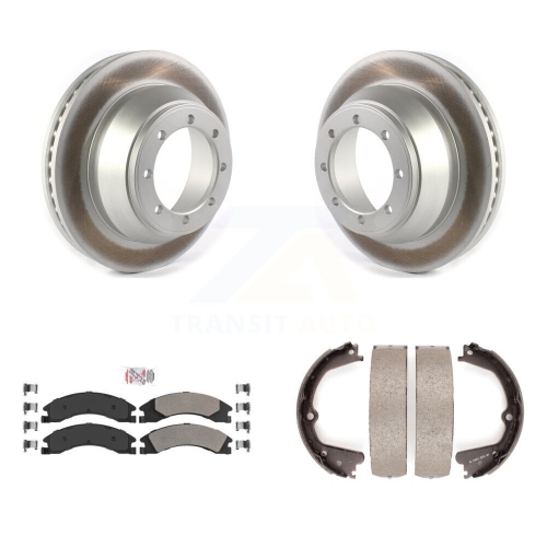 Rear Disc Coated Rotors Semi-Metallic Pads & Parking Shoes Kit For Ford E-450 Super Duty KGA-106405