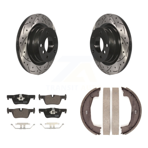 Rear Disc Drilled & Slotted Rotors Ceramic Pads And Parking Shoes Kit For BMW 230i xDrive KDT-101478