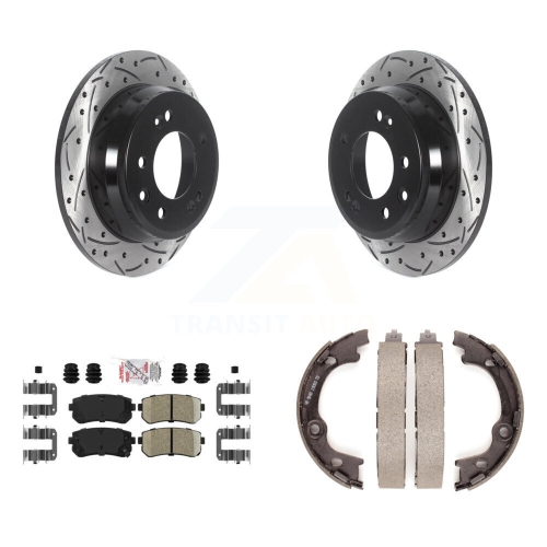 Rear Disc Drilled & Slotted Rotors Ceramic Pads And Parking Shoes Kit For Hyundai Tucson KDA-103411