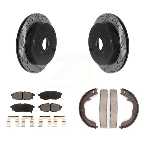 Rear Disc Drilled & Slotted Rotors Ceramic Pads And Parking Shoes Kit For Subaru Outback KDT-101566