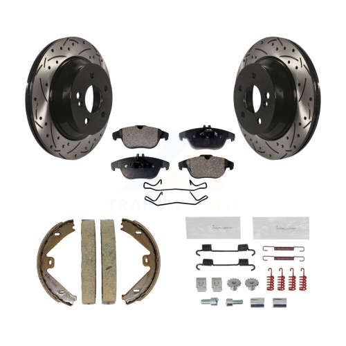 Rear Disc Drilled & Slotted Rotors Ceramic Pads Parking Shoes And Hardware Kit For GLK350 KDT-101727
