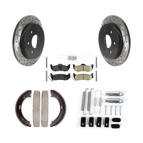 Rear Disc Drilled & Slotted Rotors Ceramic Pads Parking Shoes And Hardware Kit For Nissan KDA-103866