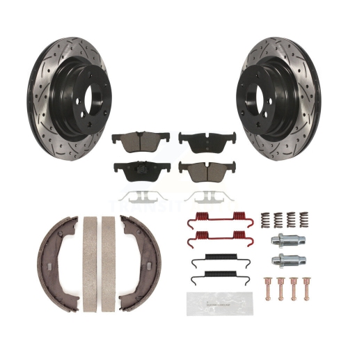 Rear Disc Drilled & Slotted Rotors Ceramic Pads Parking Shoes Hardware Kit For BMW 230i KDC-101515