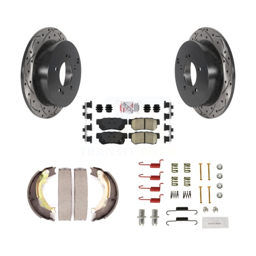 Rear Disc Drilled & Slotted Rotors Ceramic Pads Parking Shoes Hardware Kit For Hyundai KDA-103701