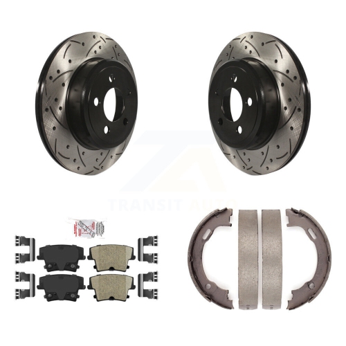 Rear Disc Drilled & Slotted Rotors Ceramic Pads Parking Shoes Kit For Dodge Chrysler 300 KDA-103304