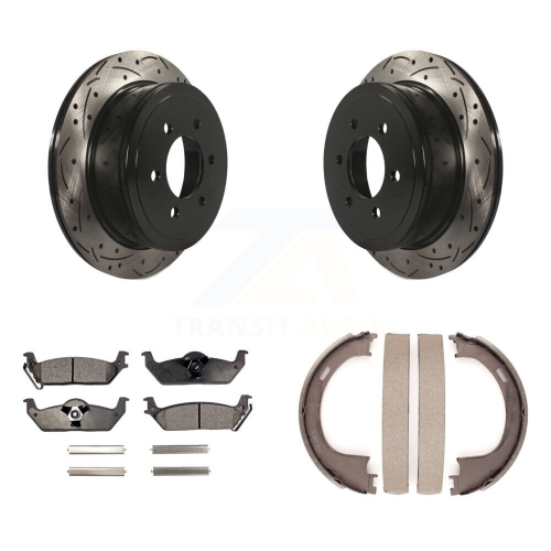 Rear Disc Drilled & Slotted Rotors Ceramic Pads Parking Shoes Kit For Ford F-150 Lincoln KDT-101633