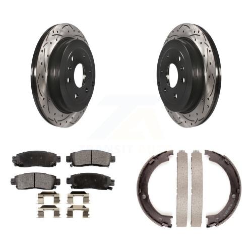 Rear Disc Drilled & Slotted Rotors Ceramic Pads Parking Shoes Kit For GMC Acadia Buick KDT-101625