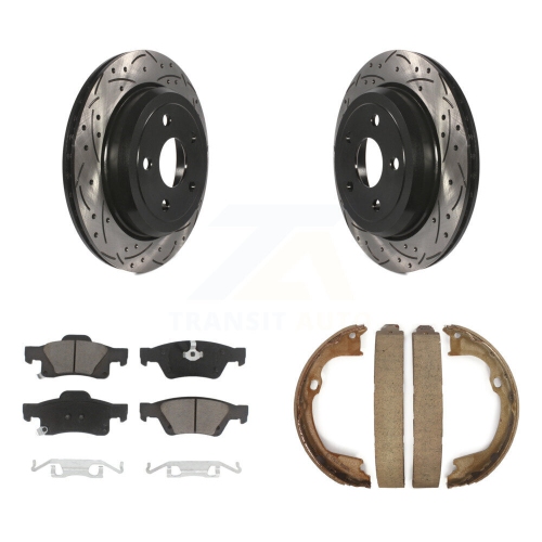 Rear Disc Drilled & Slotted Rotors Ceramic Pads Parking Shoes Kit For Jeep Grand Cherokee KDC-101478