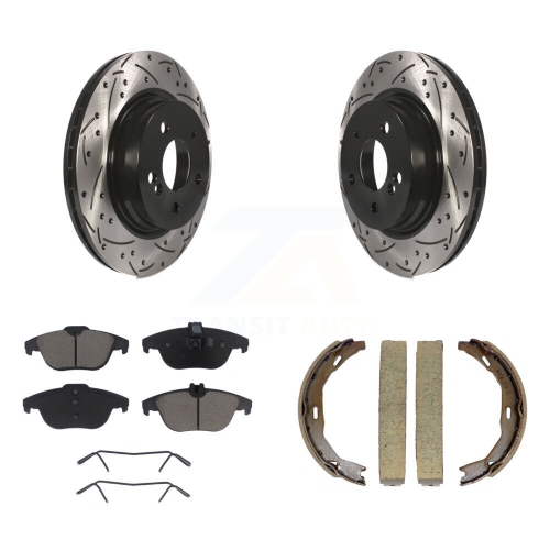 Rear Disc Drilled & Slotted Rotors Ceramic Pads Parking Shoes Kit For Mercedes-Benz C300 KDC-101322