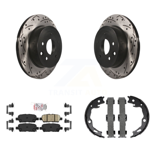 Rear Disc Drilled & Slotted Rotors Ceramic Pads Parking Shoes Kit For Nissan Rogue Sport KDA-103492