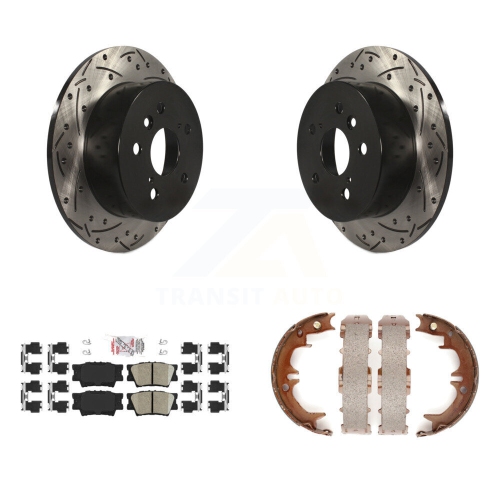 Rear Disc Drilled & Slotted Rotors Ceramic Pads Parking Shoes Kit For Toyota Camry Lexus KDA-103226