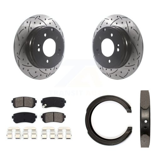 Rear Disc Drilled & Slotted Rotors Semi-Metallic Pads Parking Shoes Kit For Hyundai Kia KDS-101221