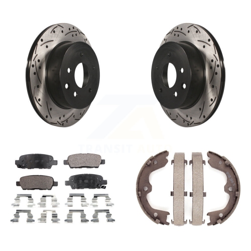 Rear Disc Drilled & Slotted Rotors Semi-Metallic Pads Parking Shoes Kit For INFINITI G35 KDF-101456