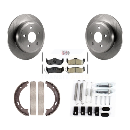 Rear Disc Rotors Ceramic Pads Parking Brake Shoes & Hardware Kit For Jeep Grand Cherokee K8A-108937