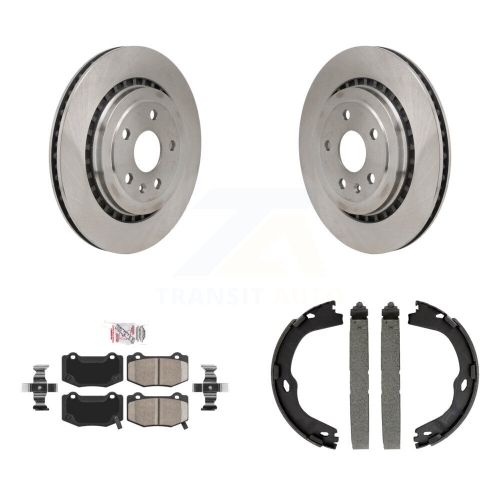 Rear Disc Rotors Ceramic Pads & Parking Brake Shoes Kit For Chevrolet Camaro Cadillac ATS K8A-108105