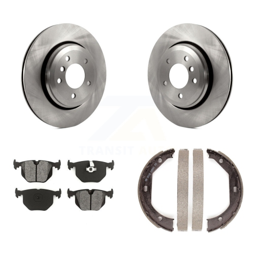 Rear Disc Rotors Semi-Metallic Pads And Parking Brake Shoes Kit For BMW 330Ci 330i 330xi K8S-104322