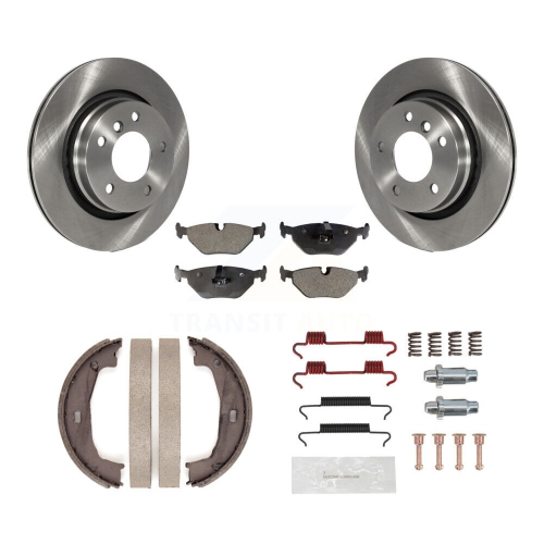 Rear Disc Rotors Semi-Metallic Pads Parking Shoes & Hardware Kit For BMW 325Ci 325i 328i K8F-105050