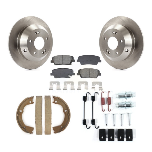 Rear Disc Rotors Semi-Metallic Pads Parking Shoes & Hardware Kit For Hyundai Santa Fe Kia K8S-104951