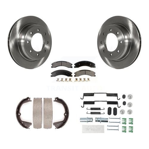Rear Disc Rotors Semi-Metallic Pads Parking Shoes & Hardware Kit For Nissan NV2500 NV3500 K8F-105066
