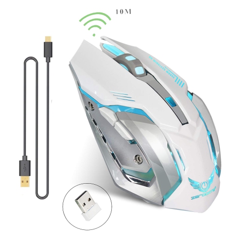 Rechargeable 2.4Ghz Wireless Gaming Mouse with USB Receiver,7 Colors Backlit for MacBook, Computer PC, Laptop (600Mah Lithiu