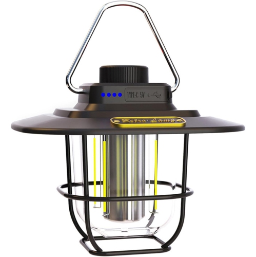 Rechargeable camping light, retro camping light, continuously adjustable brightness, adjustable color temperature - black