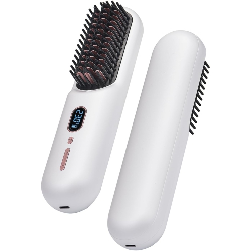 Rechargeable straight hair comb wireless portable travel lazy electric comb negative ion does not damage hair straightening and curly hair dual-purpose straightener (white)
