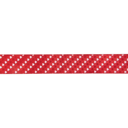 Red and White Diagonal Hearts Valentine's Day Wired Craft Ribbon 2.5" x 10 Yards
